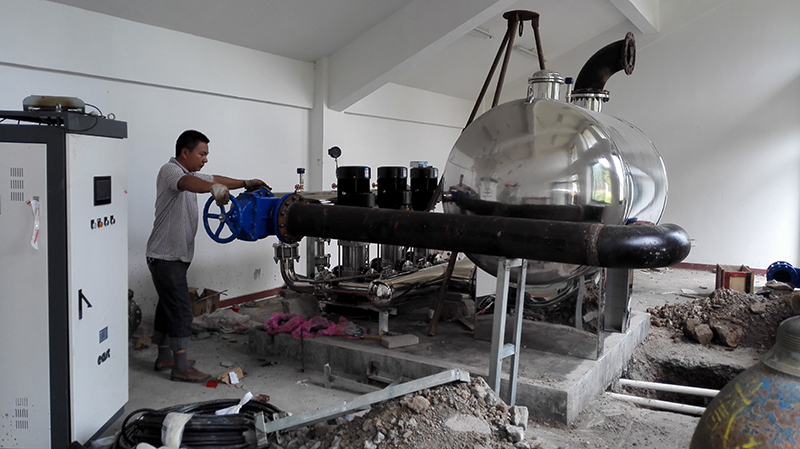 本项目是霍山县高级中学校区集中供水工程,该项目建成后,将大大缓解该校这种特殊用水单位短时间、大流量用水的难题。本项目的设计、供货、安装由我公司组织、施工。